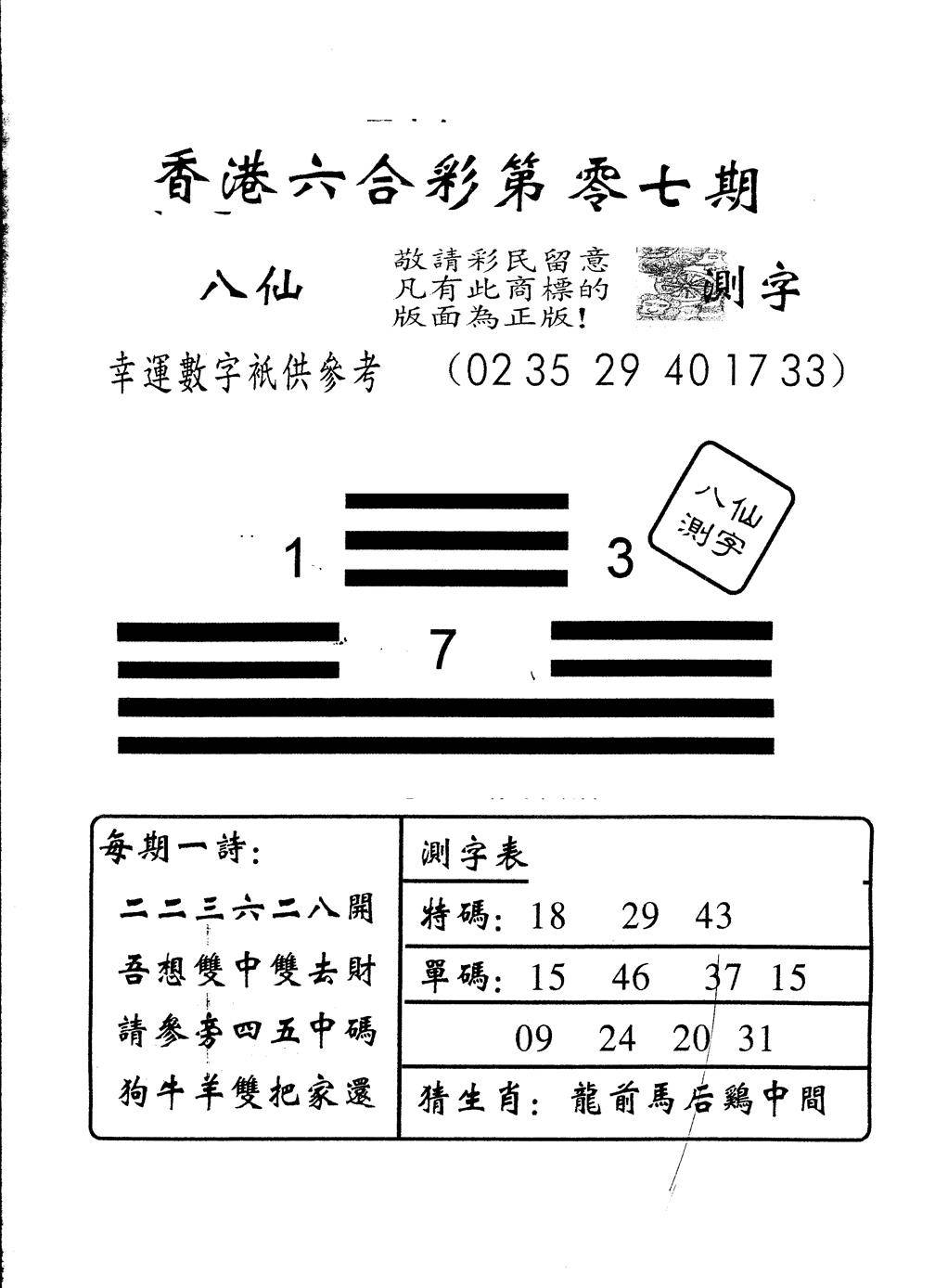 另版八仙测字