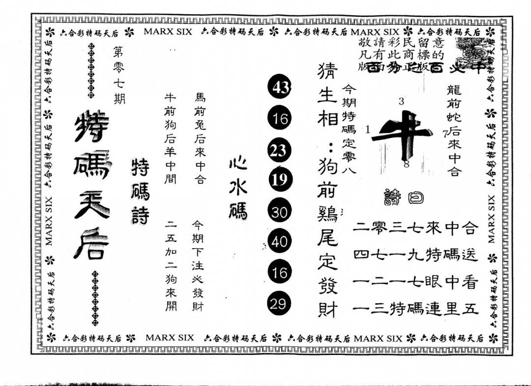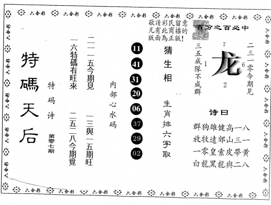 另版特码天后