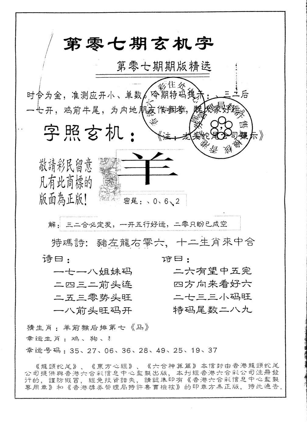 另版加印玄机字