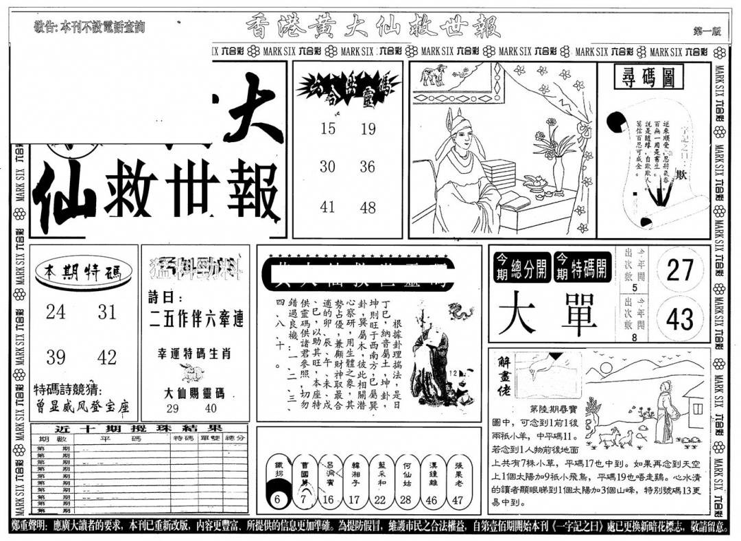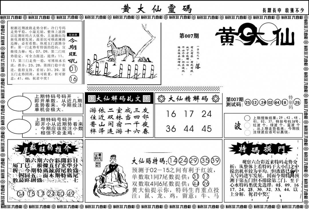 另版黄大仙灵码A