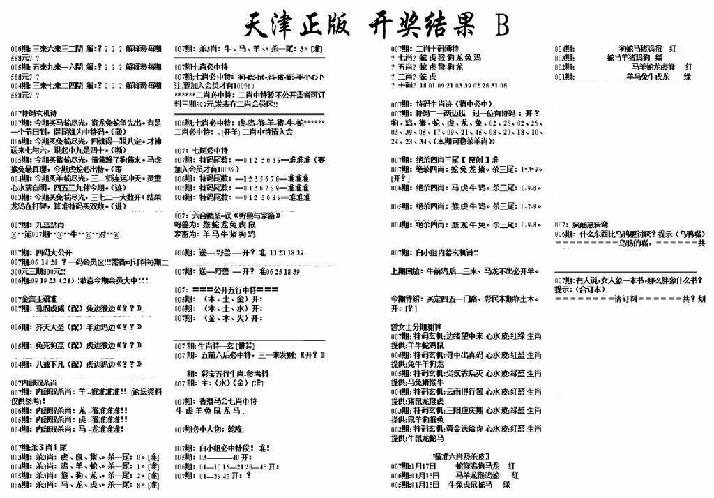 天津正版开奖结果B